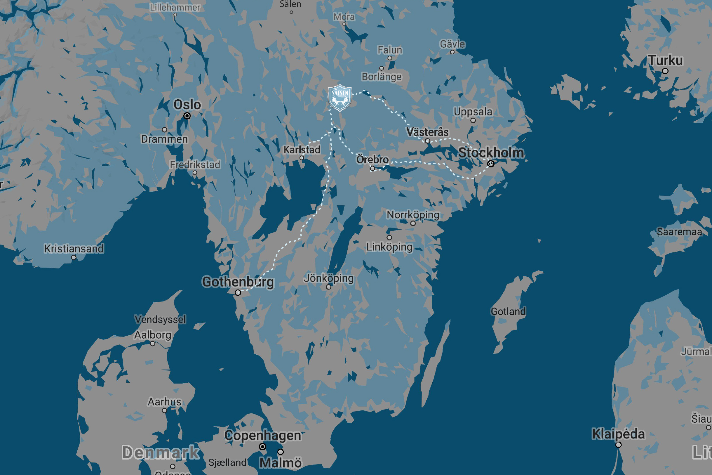 Arlanda (Stockholm) Transport time by car from airport to Säfsen 3 hours 30 minutes